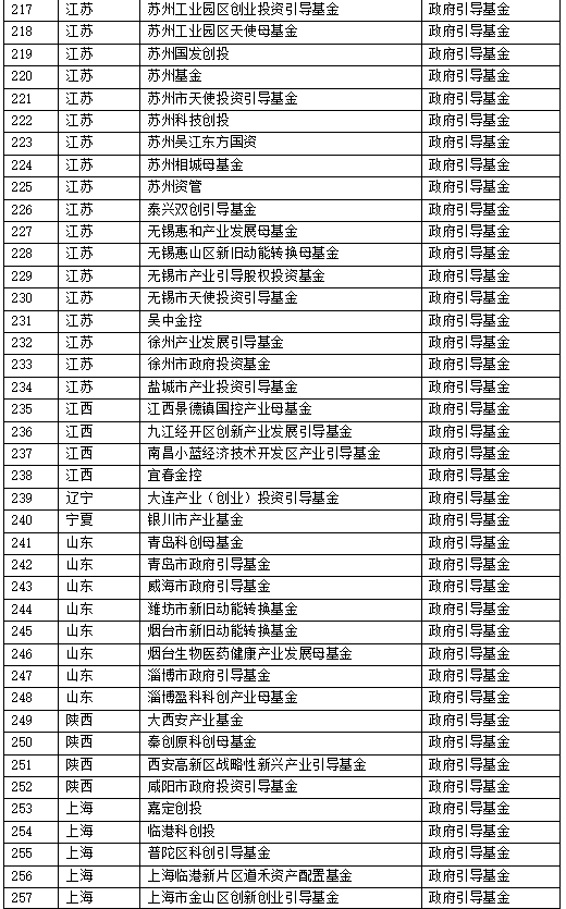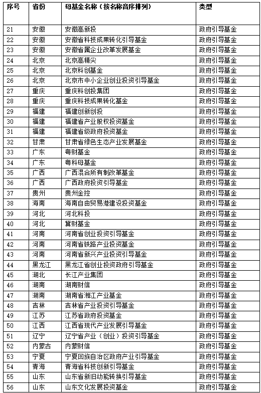 一、 中国母基金全名单